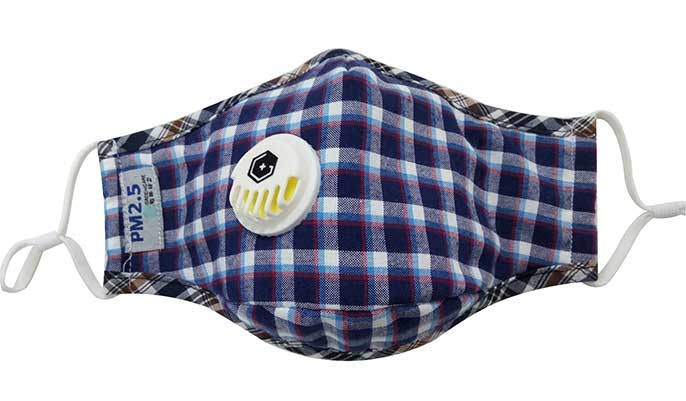 Cotton Mask with Breathing Valve-Gray&Blue Plaid